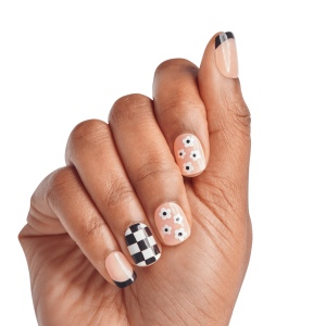 - The EASIEST manicure with pre-applied adhesive – just peel. press & go